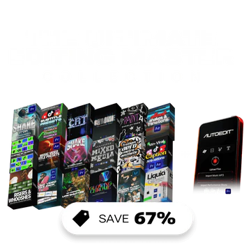 Everything you need to edit at the highest level — all 17 packs plus the AutoEdit plugin bundled together at 67% off. This is the complete editing arsenal: transitions, overlays, captions, shakes, color grades, LUTs, sound effects, and the AI editor plugin. Buy once, edit forever.
